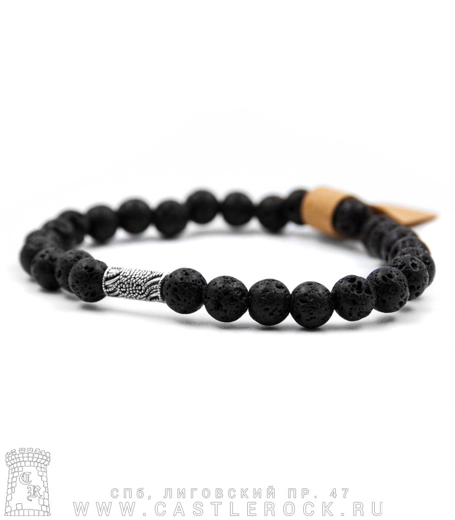 Браслет из натурального камня Вулканическая Лава (с вставкой, 6 мм)