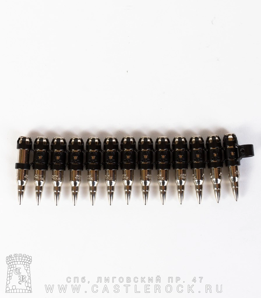 13 пуль. Размер браслета можно уменьшить, убрав лишние звенья (одно звено - одна пуля), или увеличить, добавив необходимое количество звеньев (пуль), которые можно приобрести отдельно (артикул отдельных звеньев 04190014).