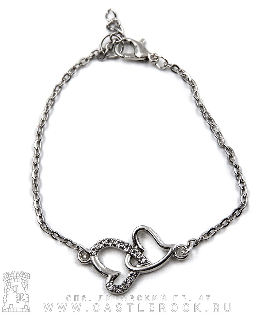 Браслет на цепочке Сердца (стразы)