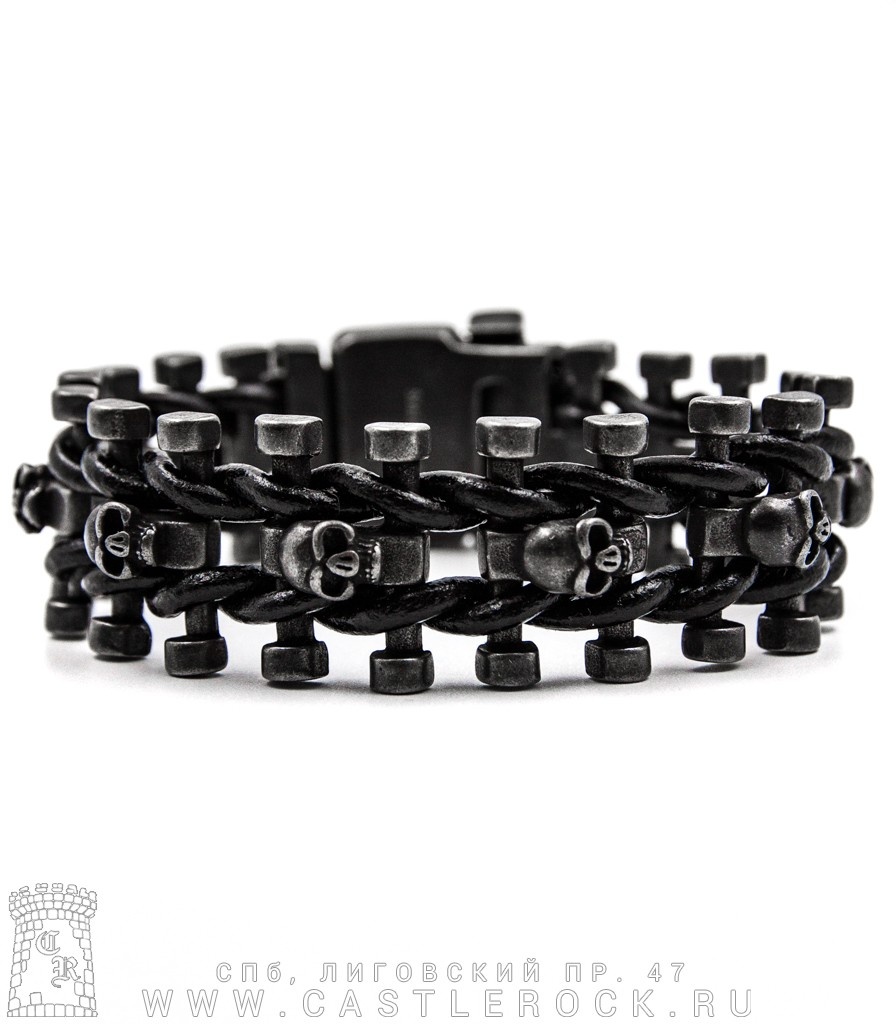 Браслет стальной Черепа (обмотка, пряжка, затемненный, 25 мм)