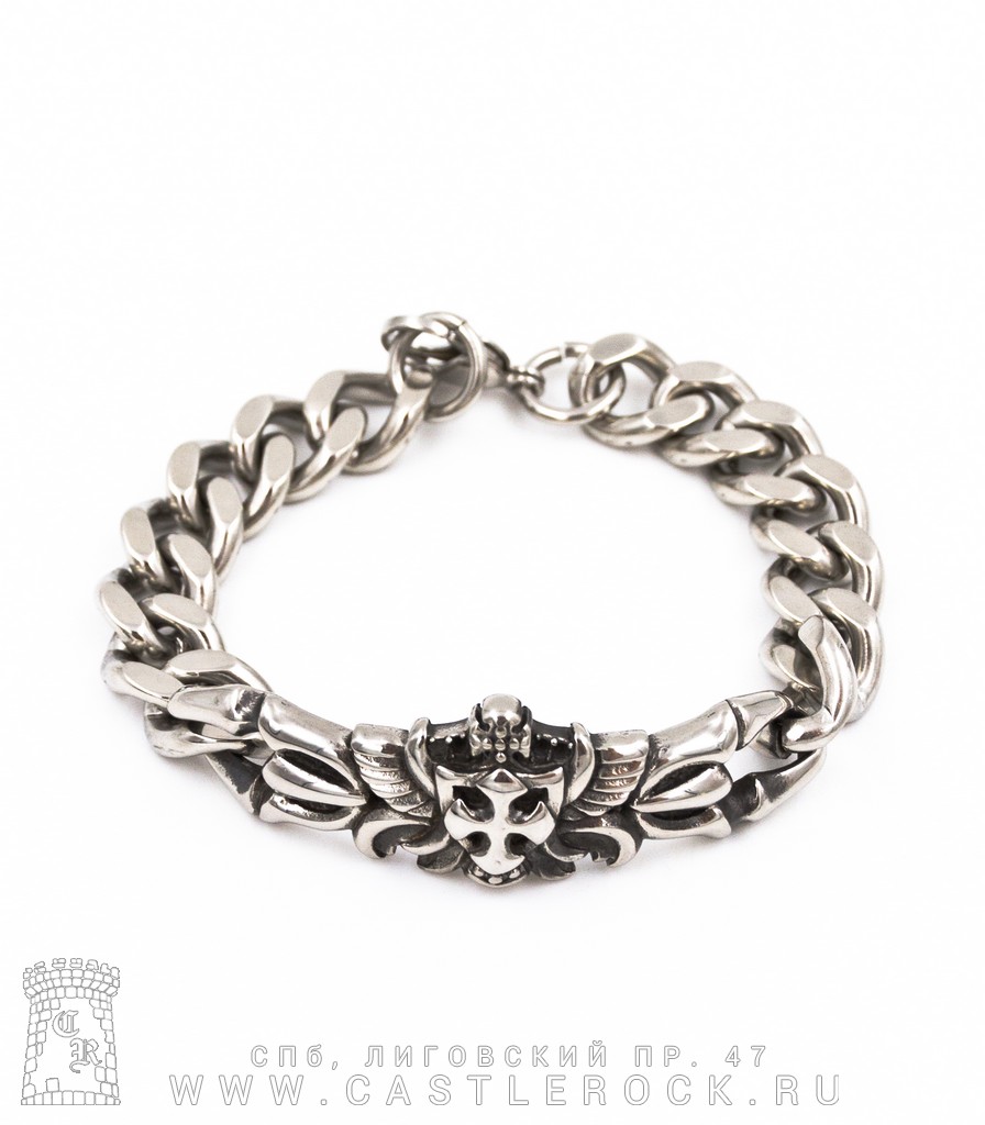 Браслет стальной Герб с Мальтийским Крестом (цепь панцирная)