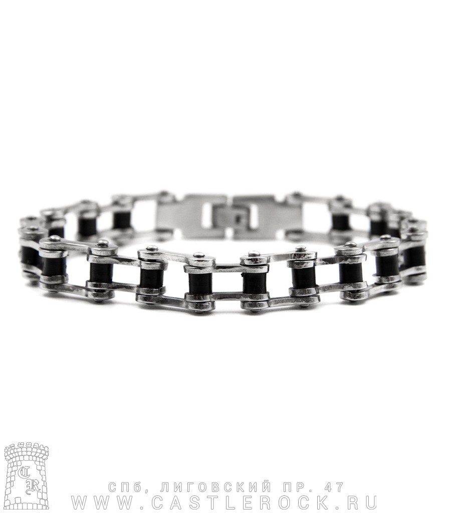 Браслет стальной Цепь Мотоциклетная (черные вставки, 12 мм)