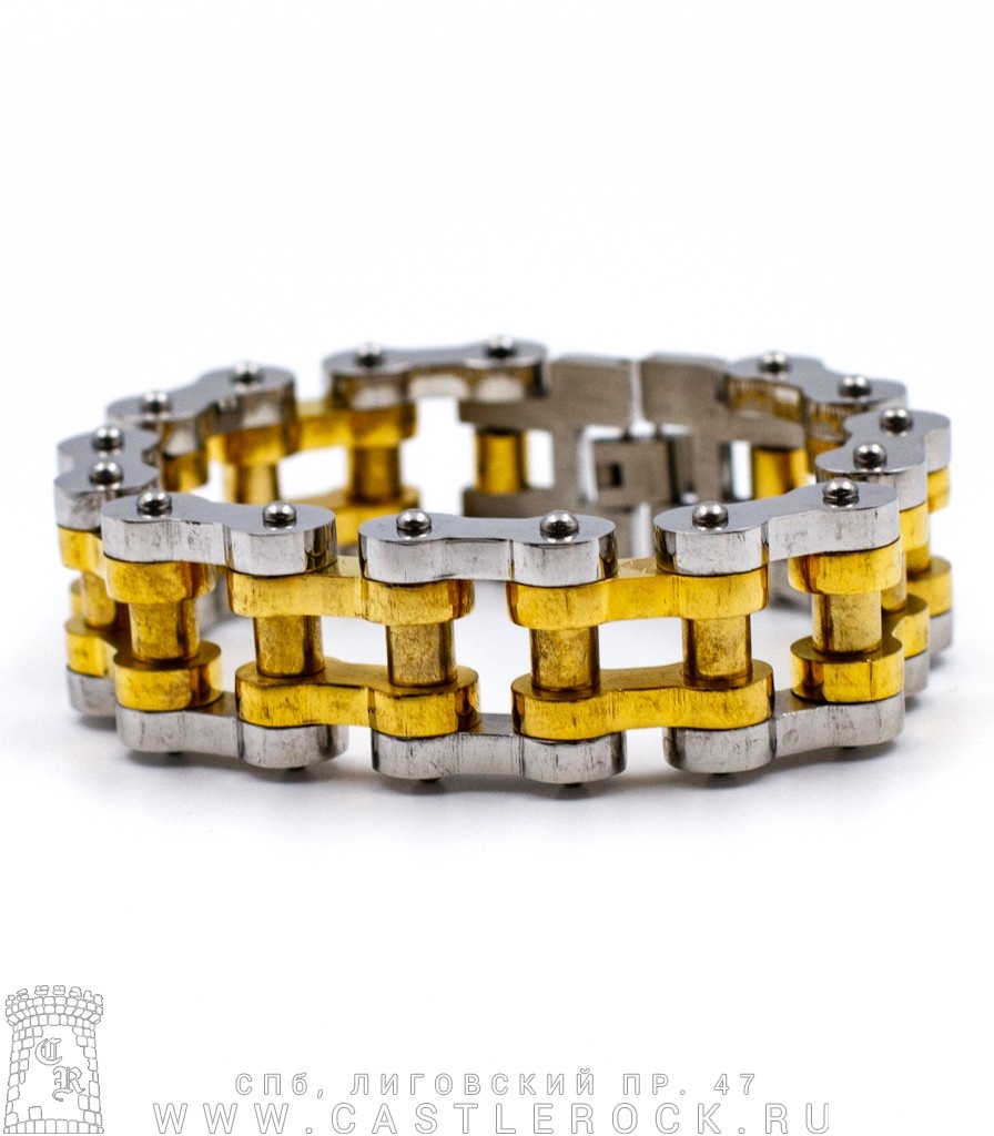 Браслет стальной Цепь Мотоциклетная (золотистые вставки, 25 мм)