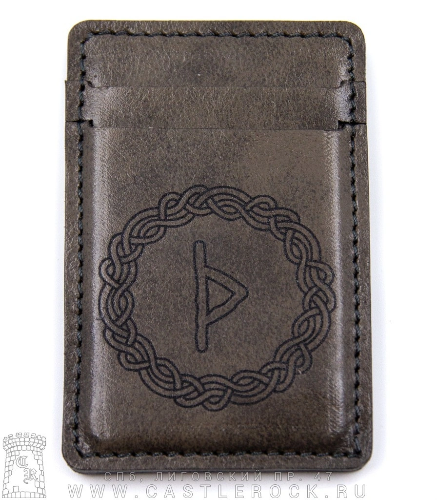 Кардхолдер с Гравировкой Молот Тора (серый, ручная работа)