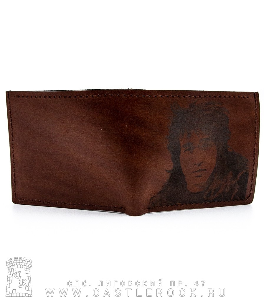 Одно отделение для банкнот, карман для монет, три кармана для карт и визиток. Рисунок нанесен методом лазерной гравировки.