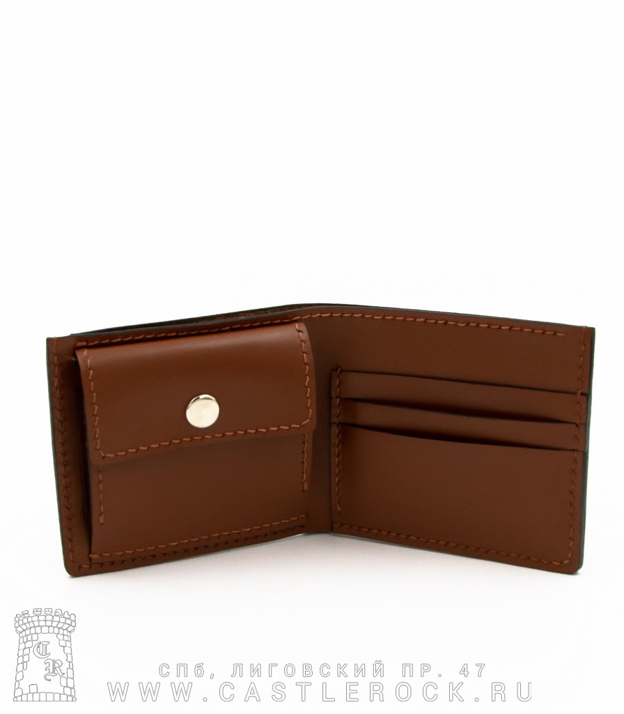 Одно отделение для банкнот, карман для монет на кнопке, три кармана для карт и визиток. Рисунок нанесен методом лазерной гравировки.