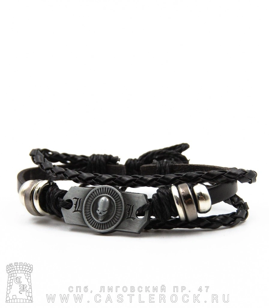 Фенечка кожаная Череп в Круге (черная)