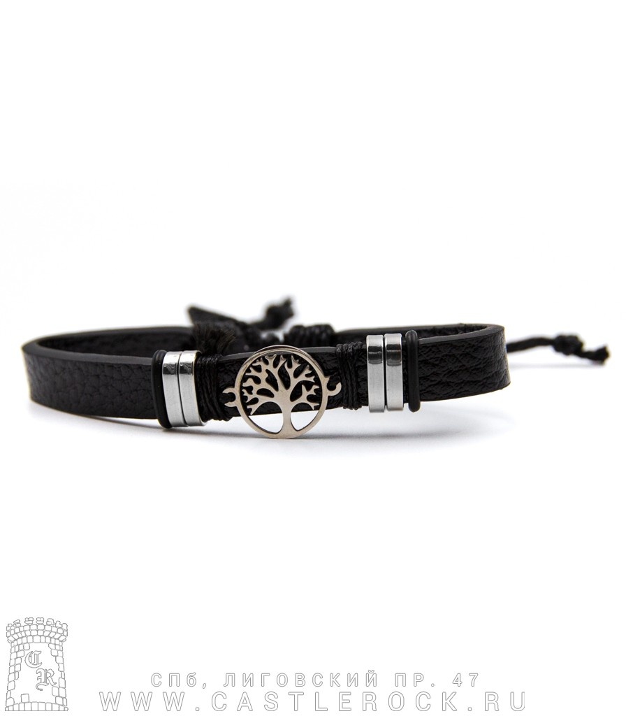 Фенечка кожаная Древо Жизни Иггдрасиль (ремень, скобы, черная)