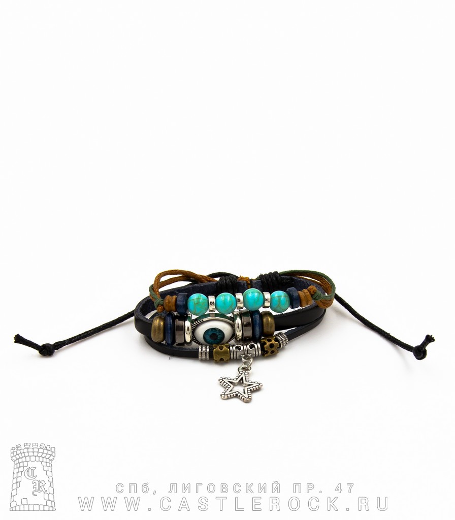 Фенечка кожаная Глаз и Звезда (черная)