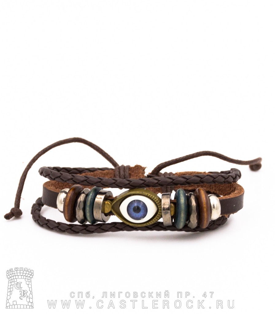 Фенечка кожаная Глаз (разноцветные бусины, коричневая)