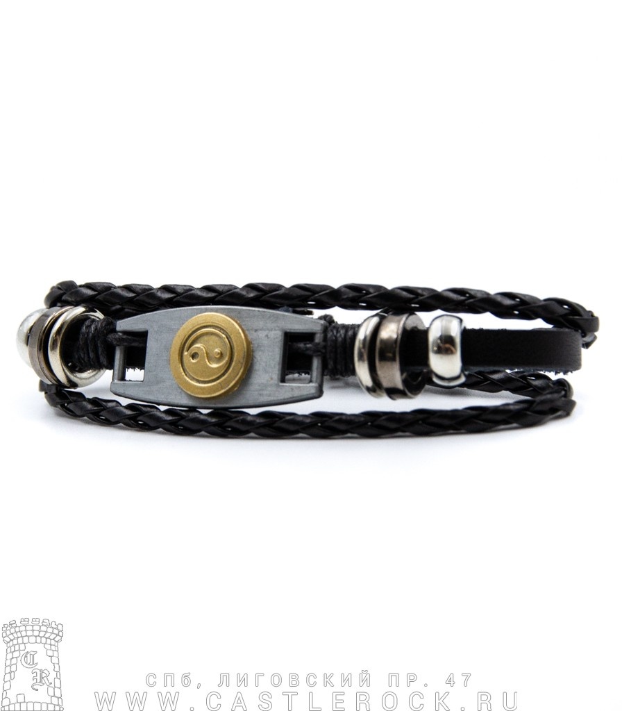 Фенечка кожаная Инь-Ян (бронзовый, черная)