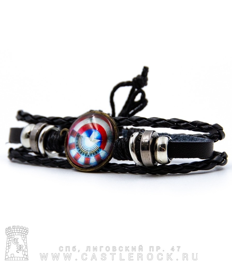 Фенечка кожаная Iron Man Железный Человек Сердце Тони Старка и Щит Капитана Америки