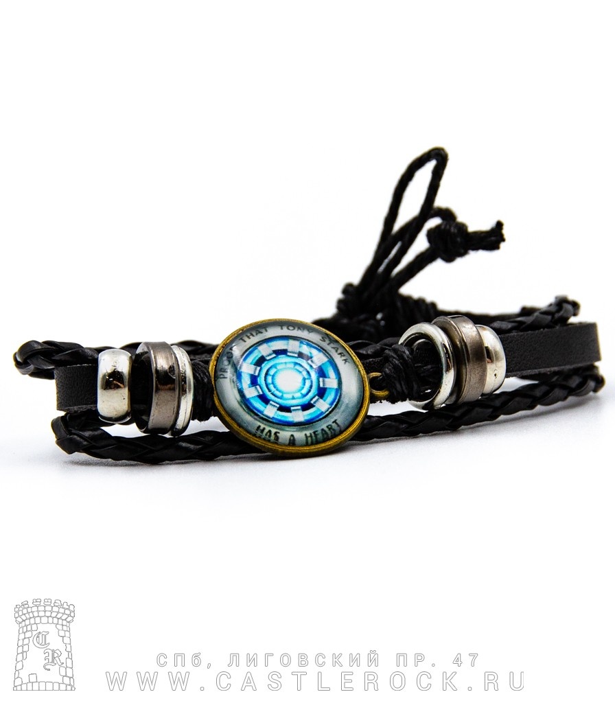 Фенечка кожаная Iron Man Железный Человек Сердце Тони Старка (реактор голубой)
