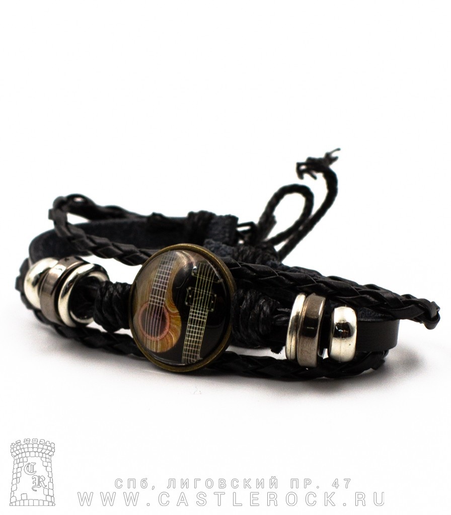 Фенечка кожаная Кабошон Гитары Инь-Ян (черная)