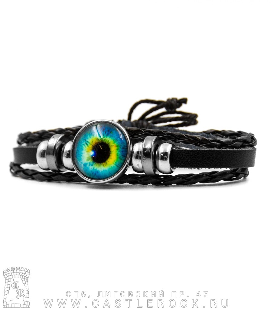 Фенечка кожаная Кабошон Глаз Голубой (черная)