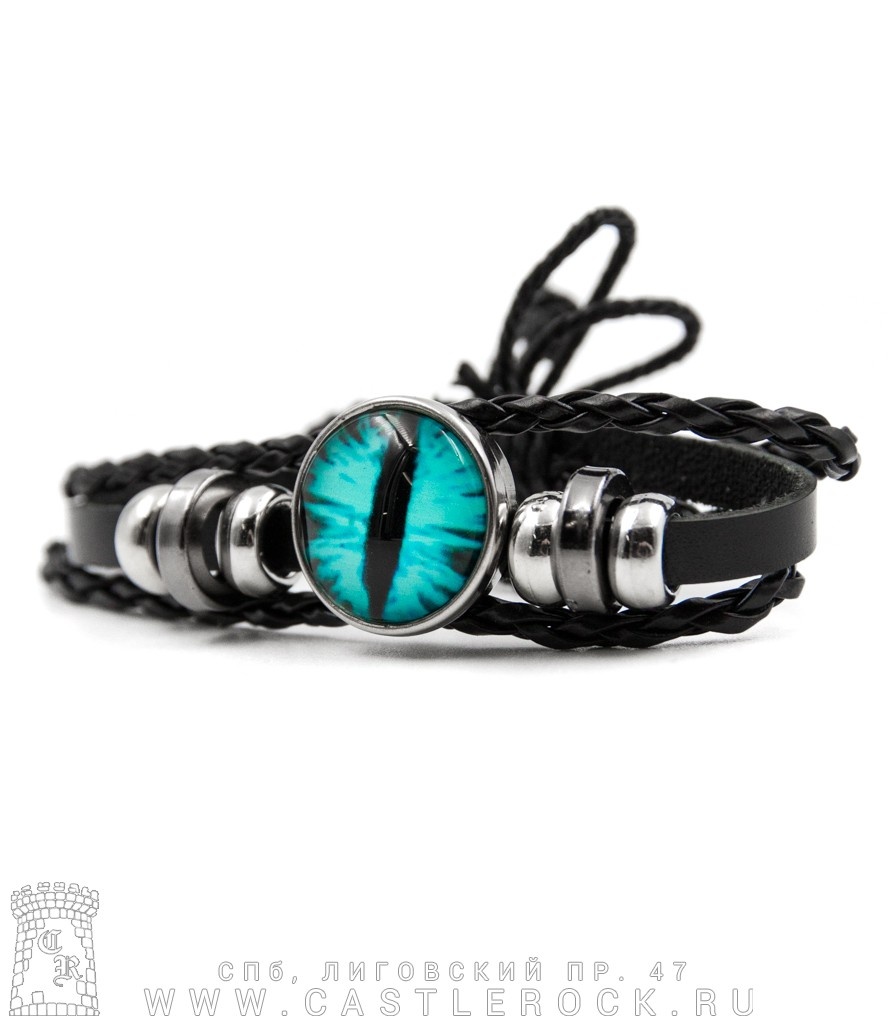 Фенечка кожаная Кабошон Глаз Голубой (кошачий, черная)