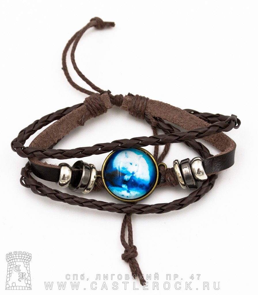 Фенечка кожаная Кабошон Волк Белый (коричневая темная)