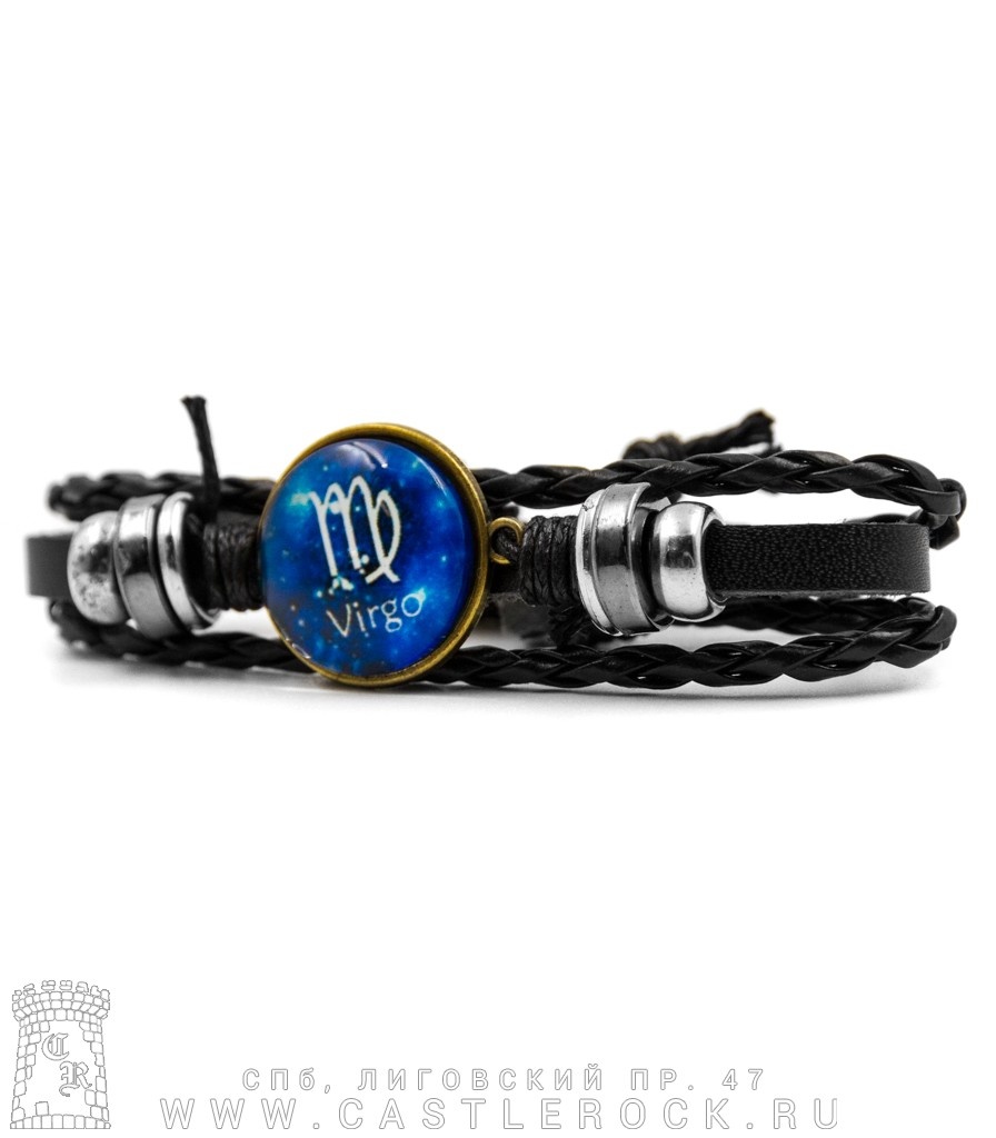 Фенечка кожаная Кабошон Знак Зодиака Дева (синий)