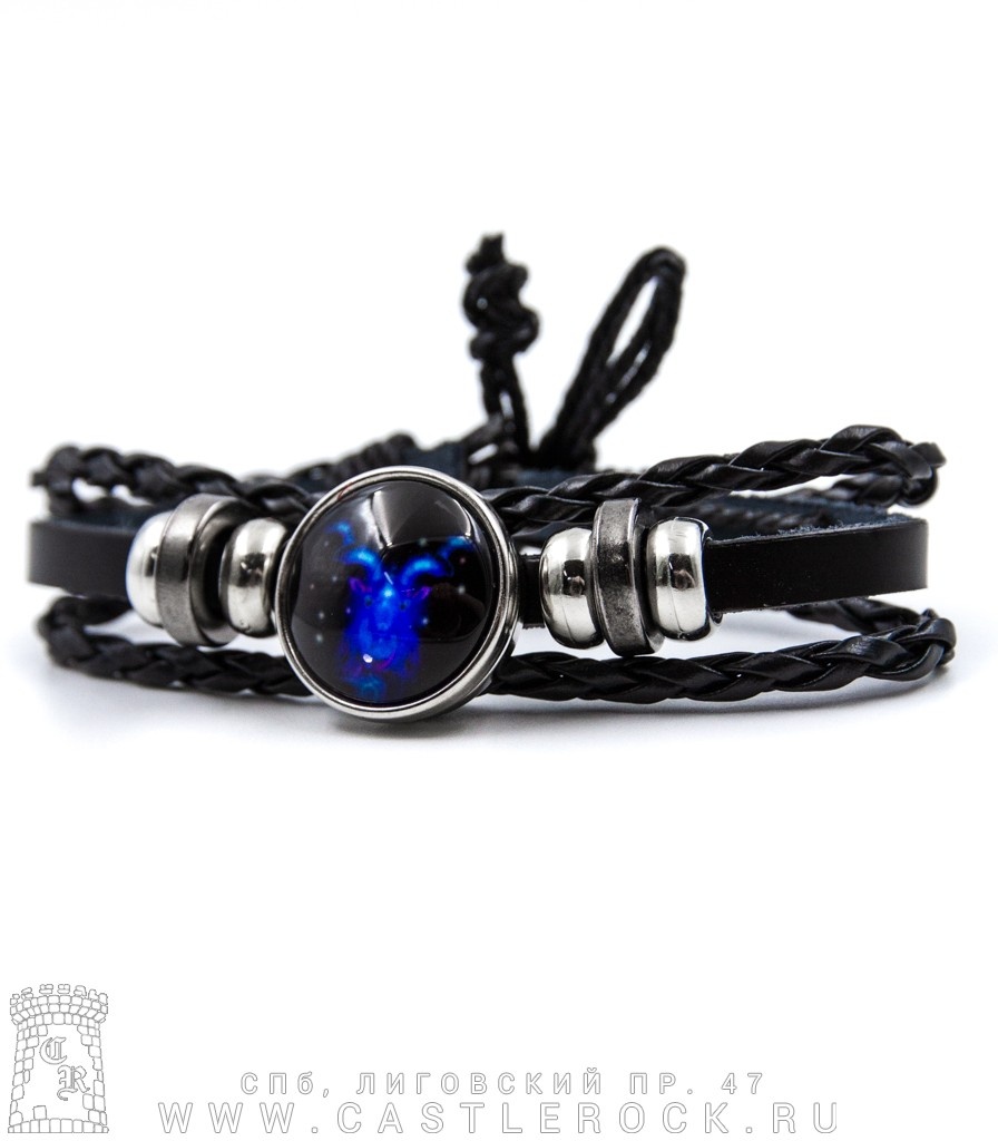 Фенечка кожаная Кабошон Знак Зодиака Козерог (синий, светится)