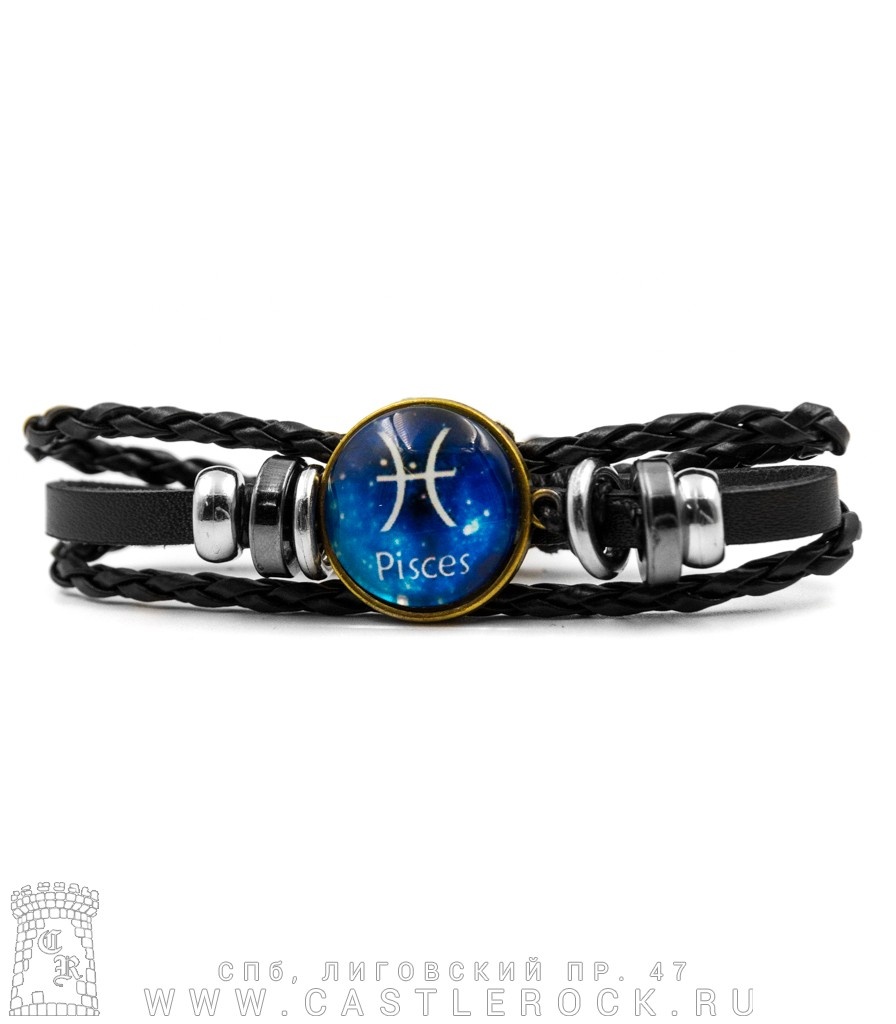 Фенечка кожаная Кабошон Знак Зодиака Рыбы (синий)