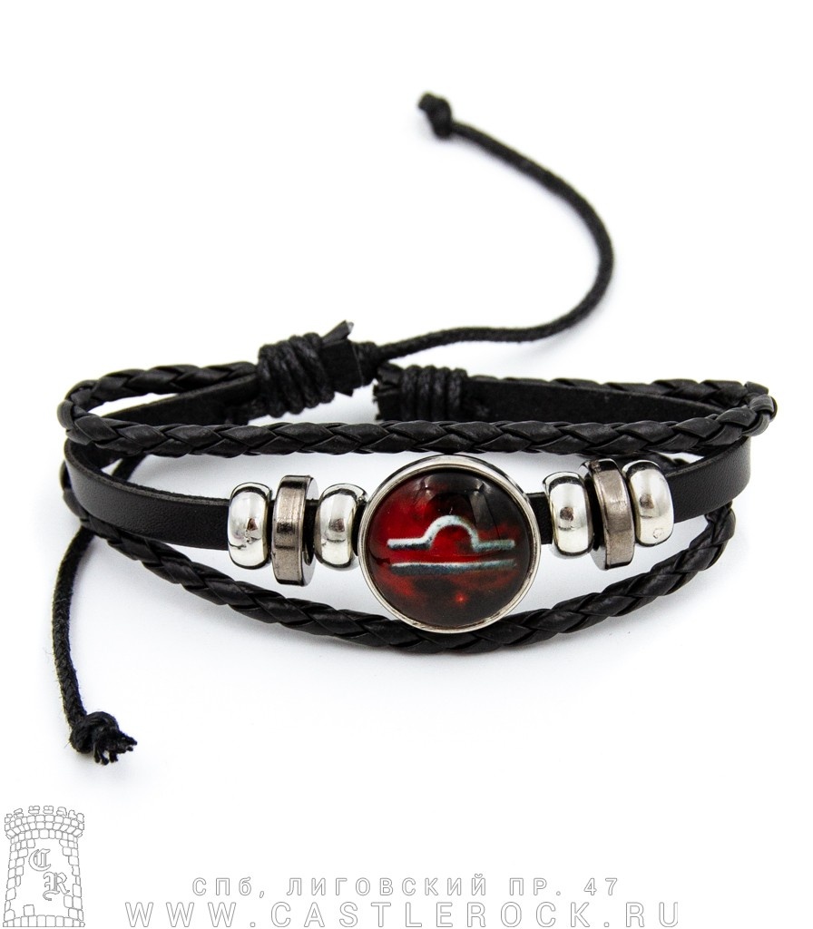 Фенечка кожаная Кабошон Знак Зодиака Весы (ч/к)