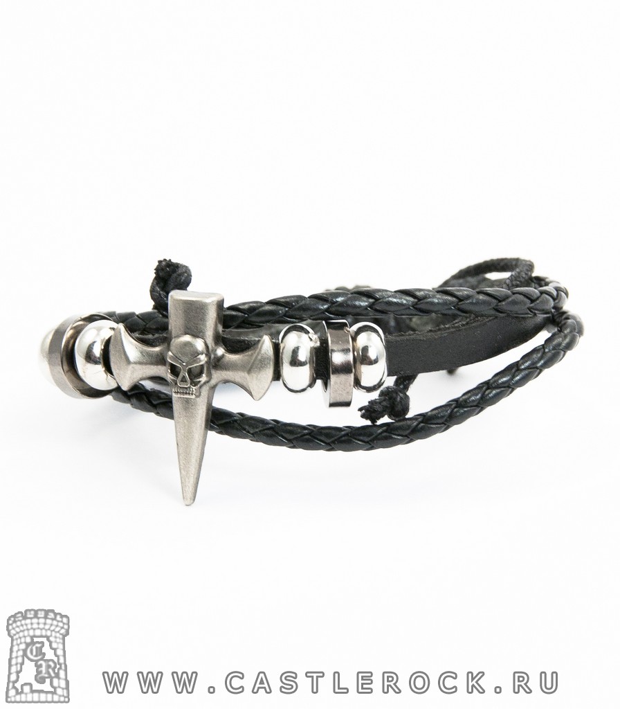 Фенечка кожаная Крест с Черепом (черная)