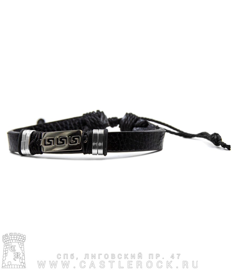 Фенечка кожаная Меандр (ремень, скобы, черная)