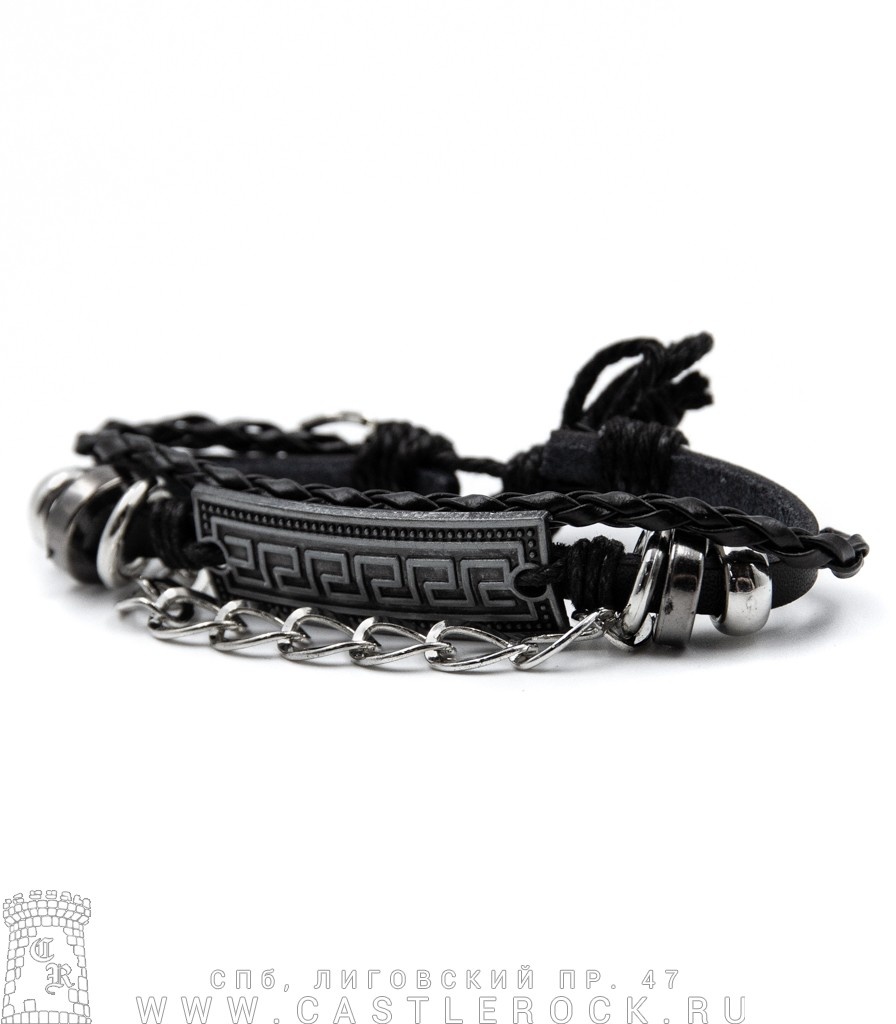 Фенечка кожаная Меандр (цепь, черная)