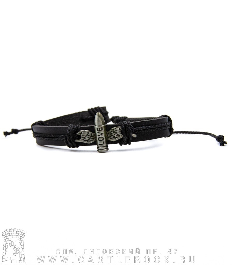 Фенечка кожаная Патрон Крылатый "Love" (ремень, черная)