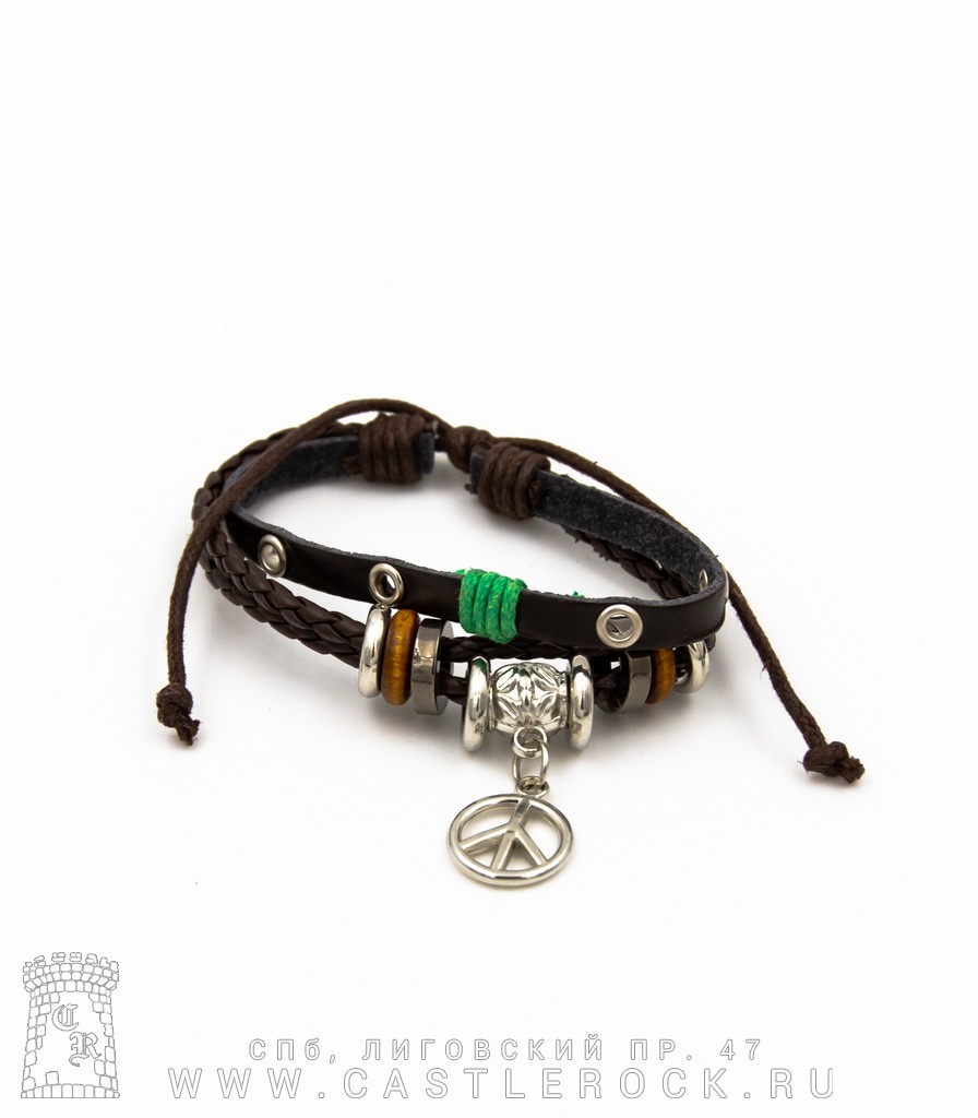 Фенечка кожаная Пацифик (зеленая нить, коричневая темная)