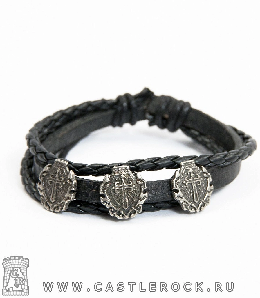 Фенечка кожаная Щиты и Мечи (черная)