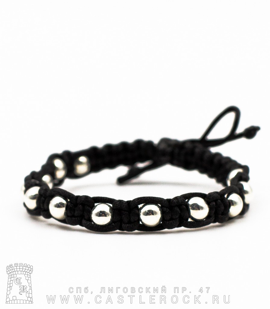 Фенечка плетеная Бусины Металлик (круг, черная)