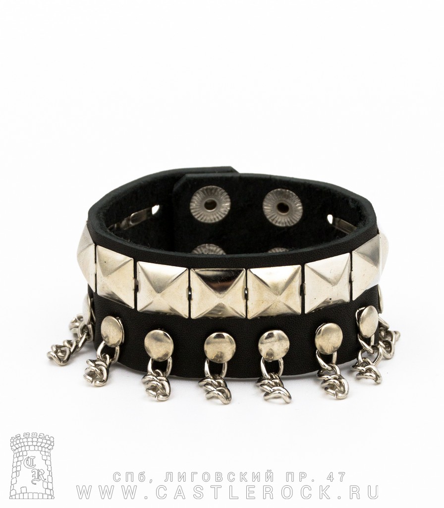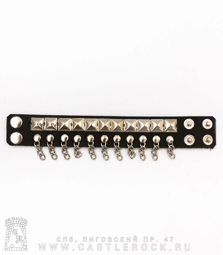 Напульсник кожаный 2 ряда Пирамиды, Клепки, Цепи (на клепках)