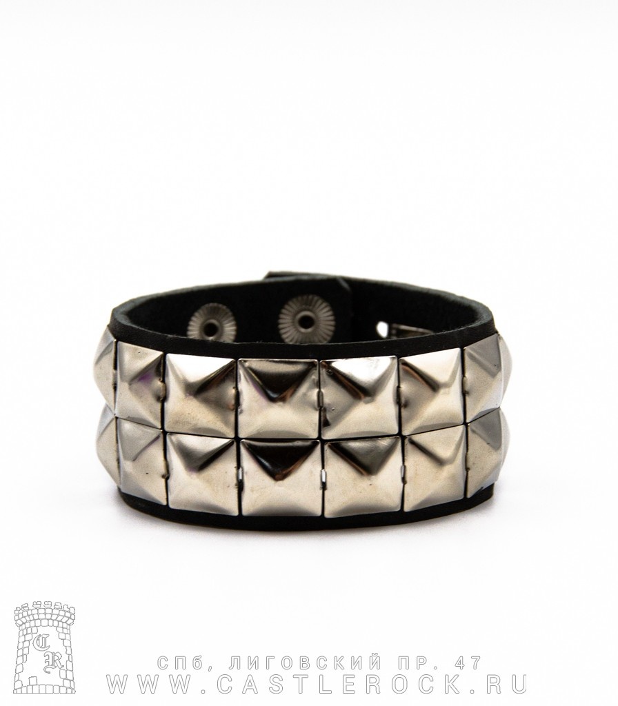 Напульсник кожаный 2 ряда Пирамиды (на клепках)