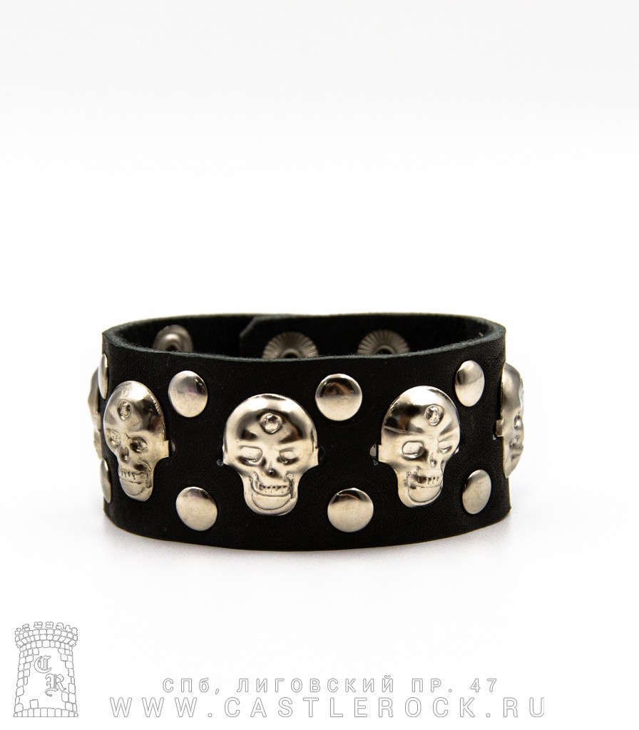 Напульсник кожаный 3 ряда Черепа, Клепки Большие (на клепках)