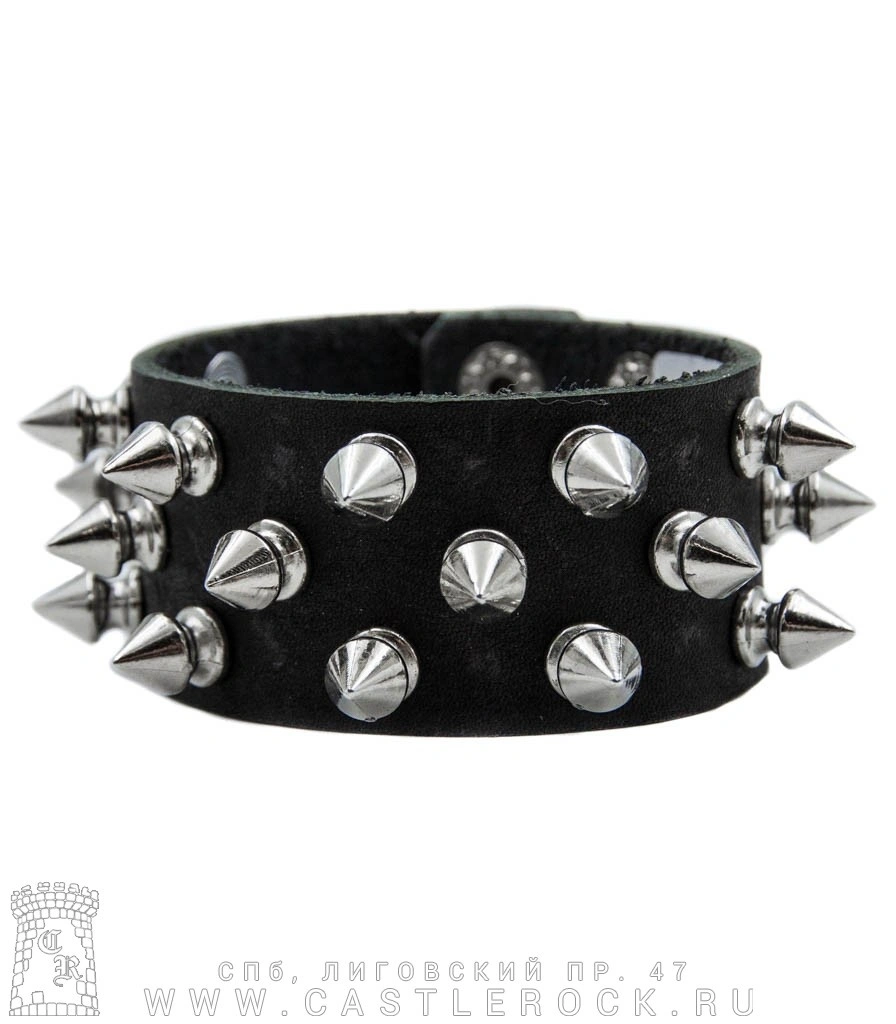 Напульсник кожаный 3 ряда Шипы (на клепках)