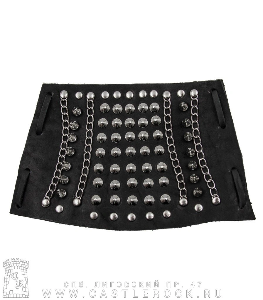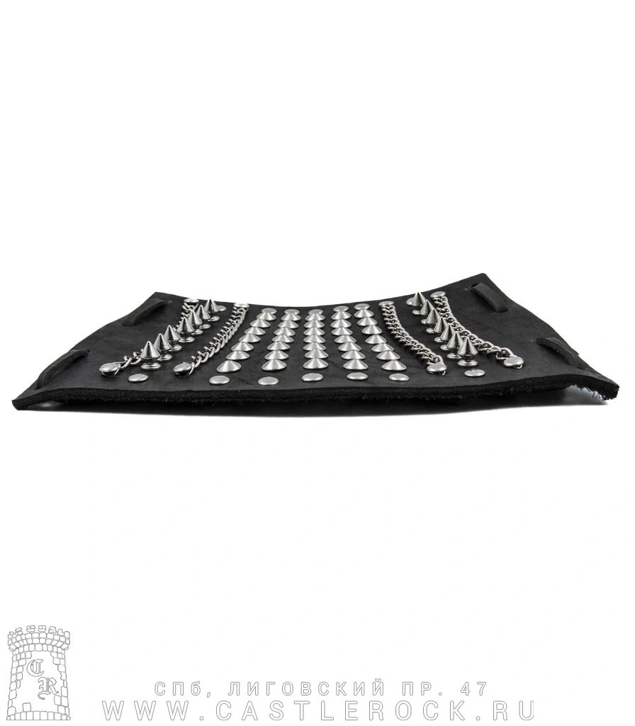 Напульсник кожаный Широкий Шипы, Цепи, Клепки (на шнуровке)