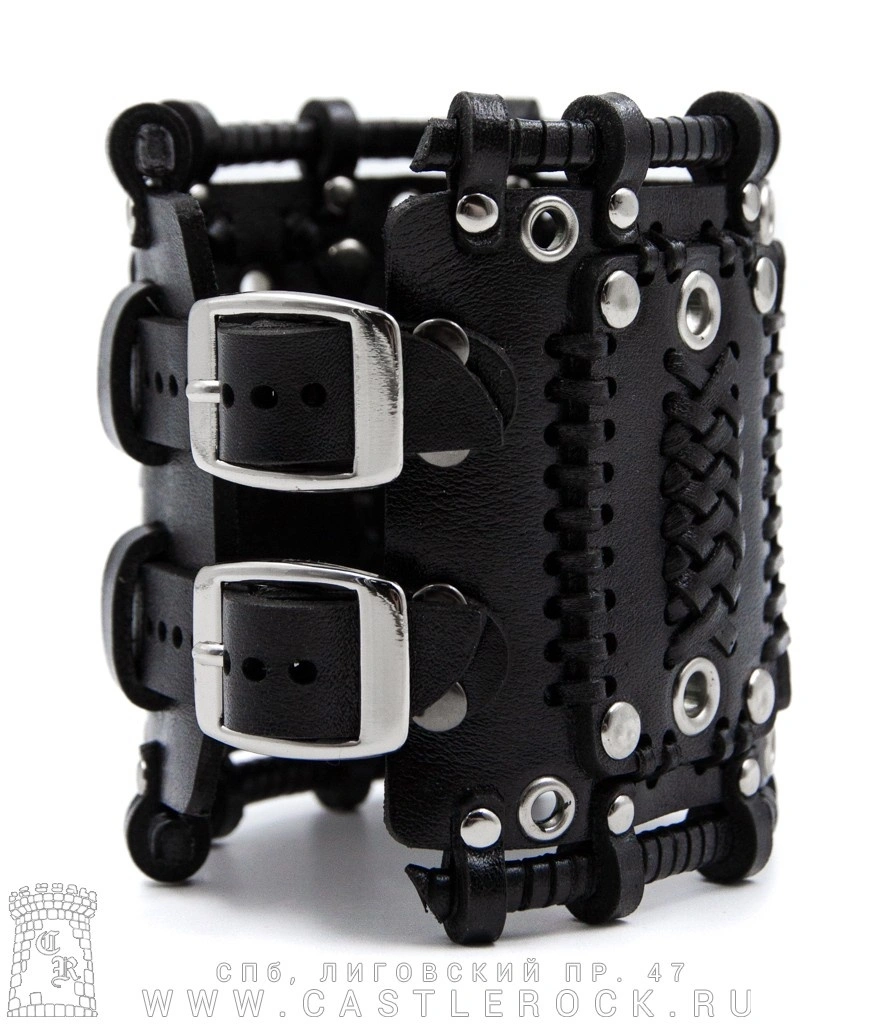 Напульсник кожаный Стимпанк Черный (bspKV-2) Валькнут