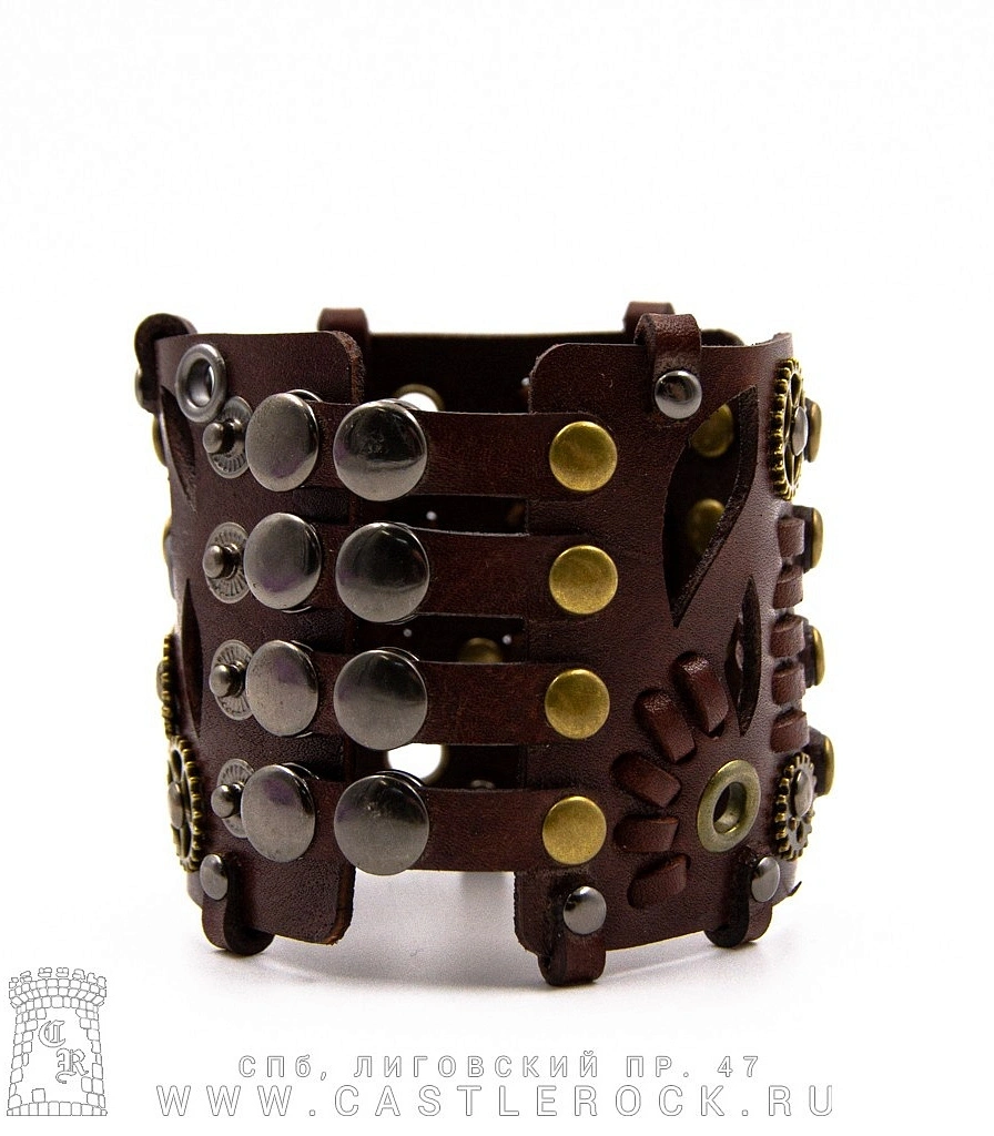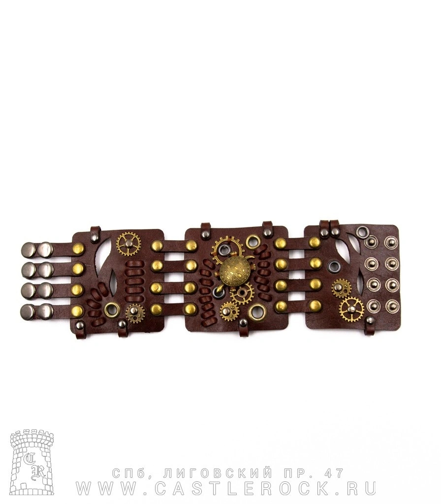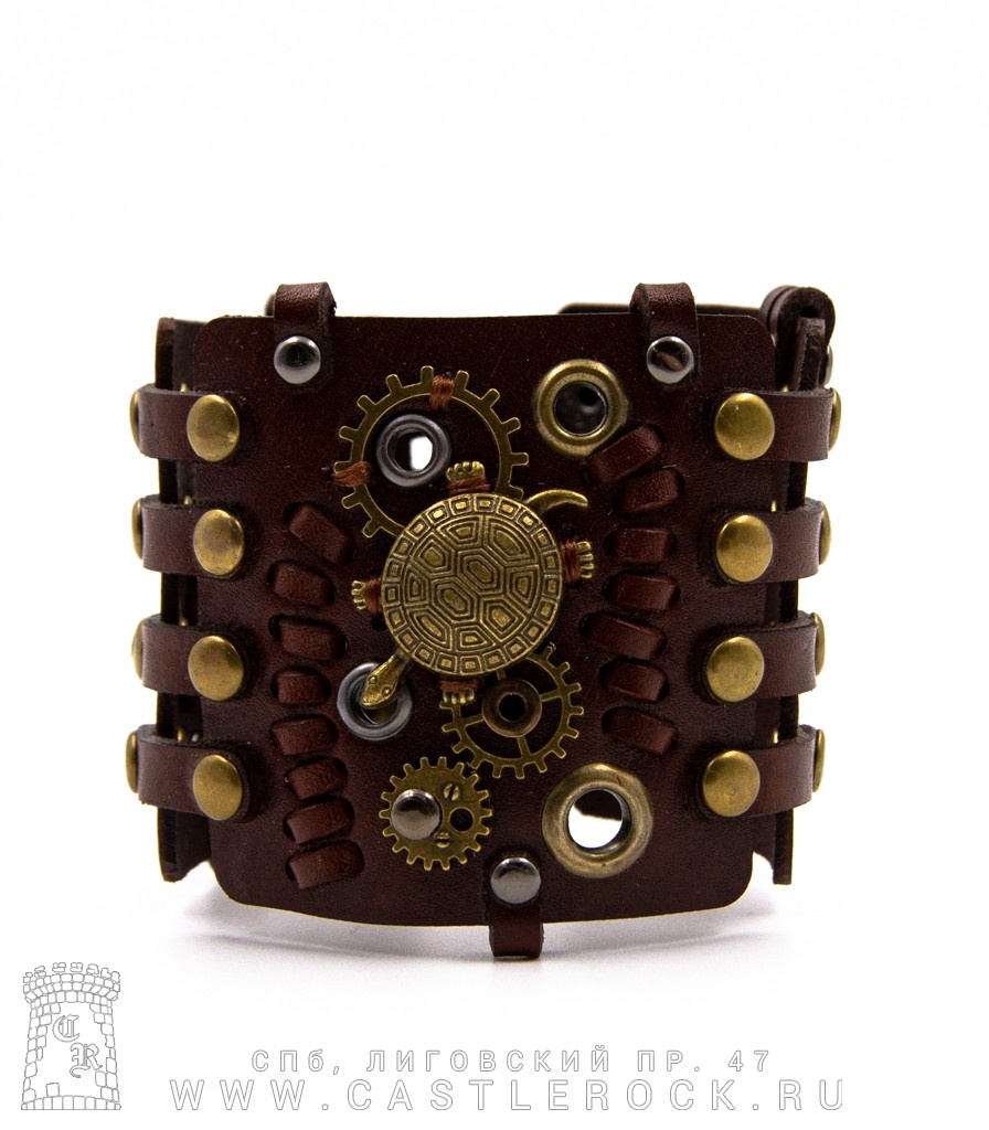 Напульсник кожаный Стимпанк Коричневый (bspK-6) Черепаха
