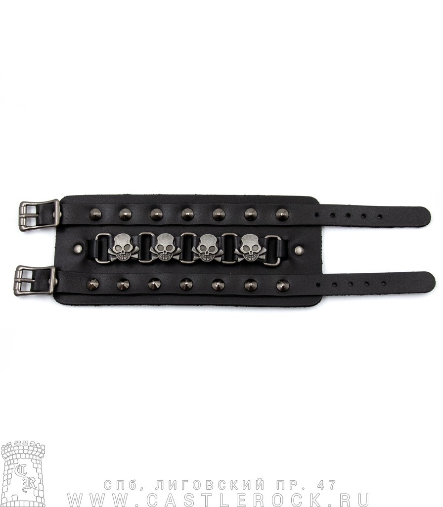 Напульсник кожзам 2 Ремня, Черепа и Кости, Клепки (на пряжках)