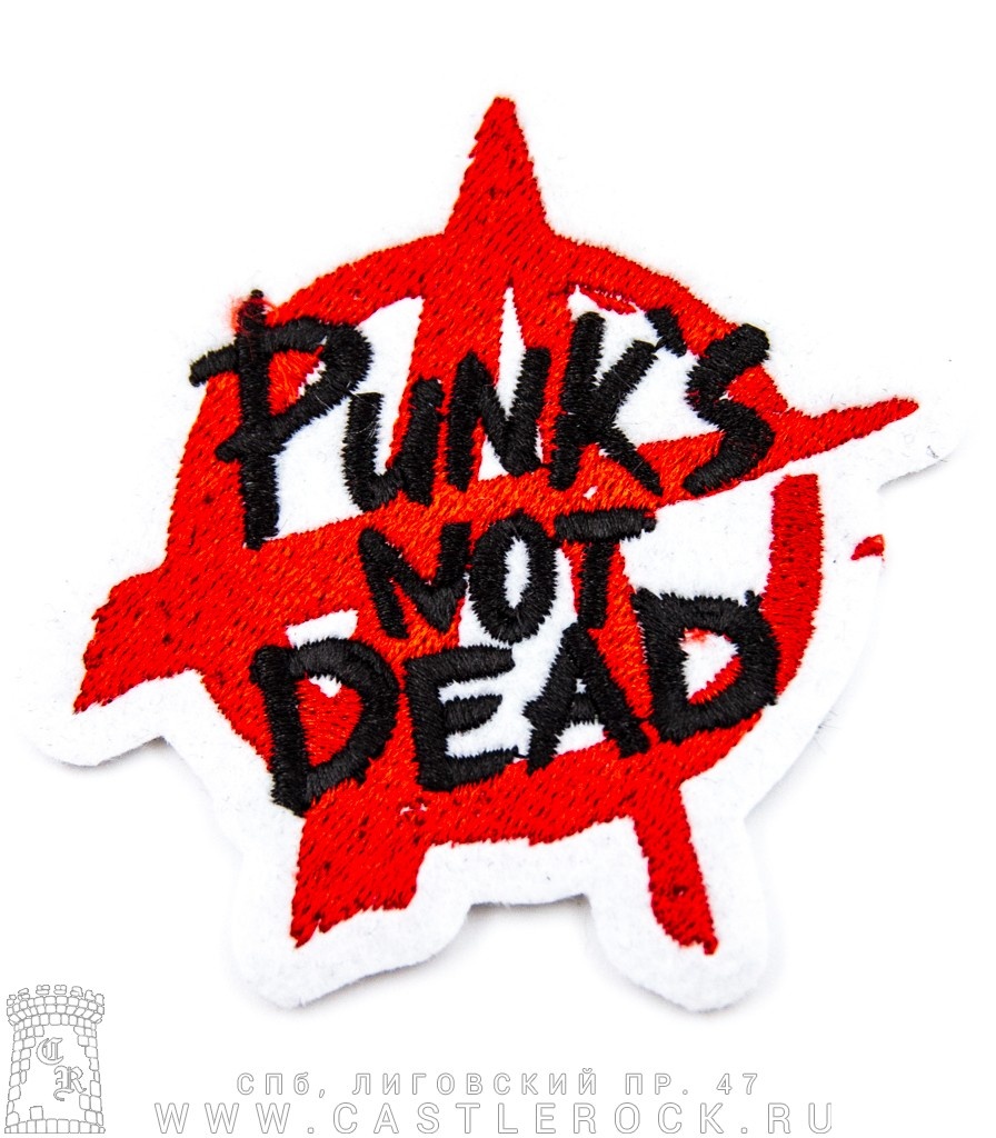 Нашивка Anarchy Анархия Punks Not Dead (лого, белая, вышивка)