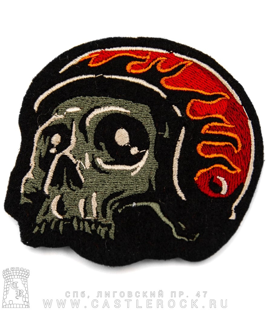 Нашивка Череп Байкера (огненный шлем, вышивка)