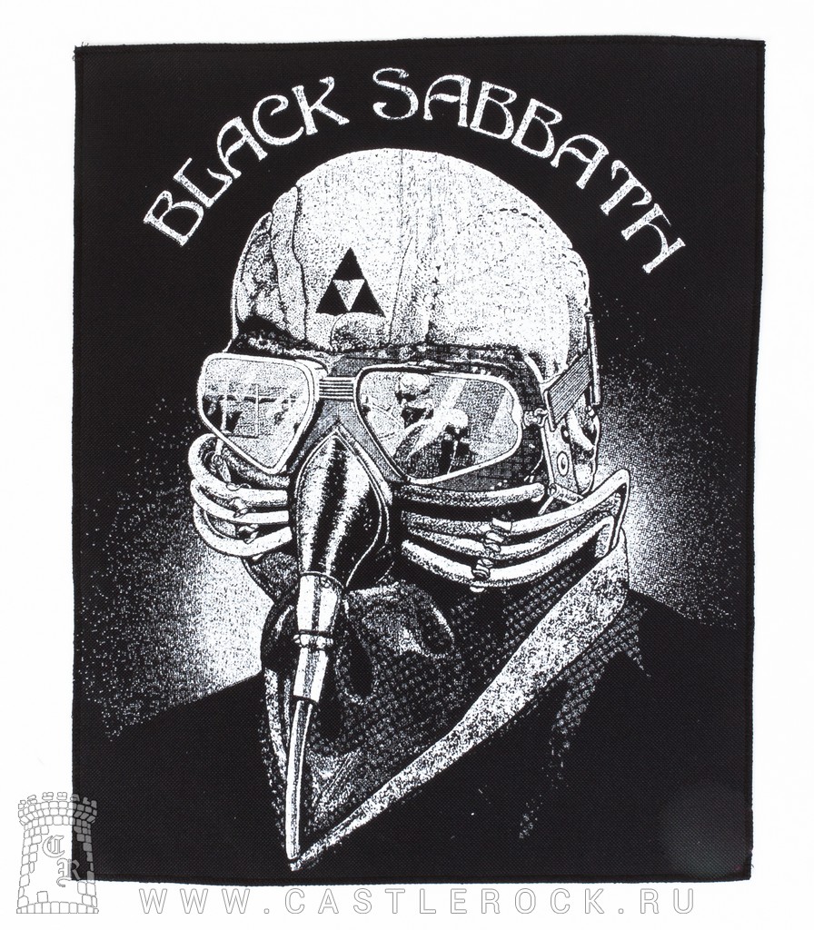 Нашивка на спину Black Sabbath "Never Say Die!" (принт белый)