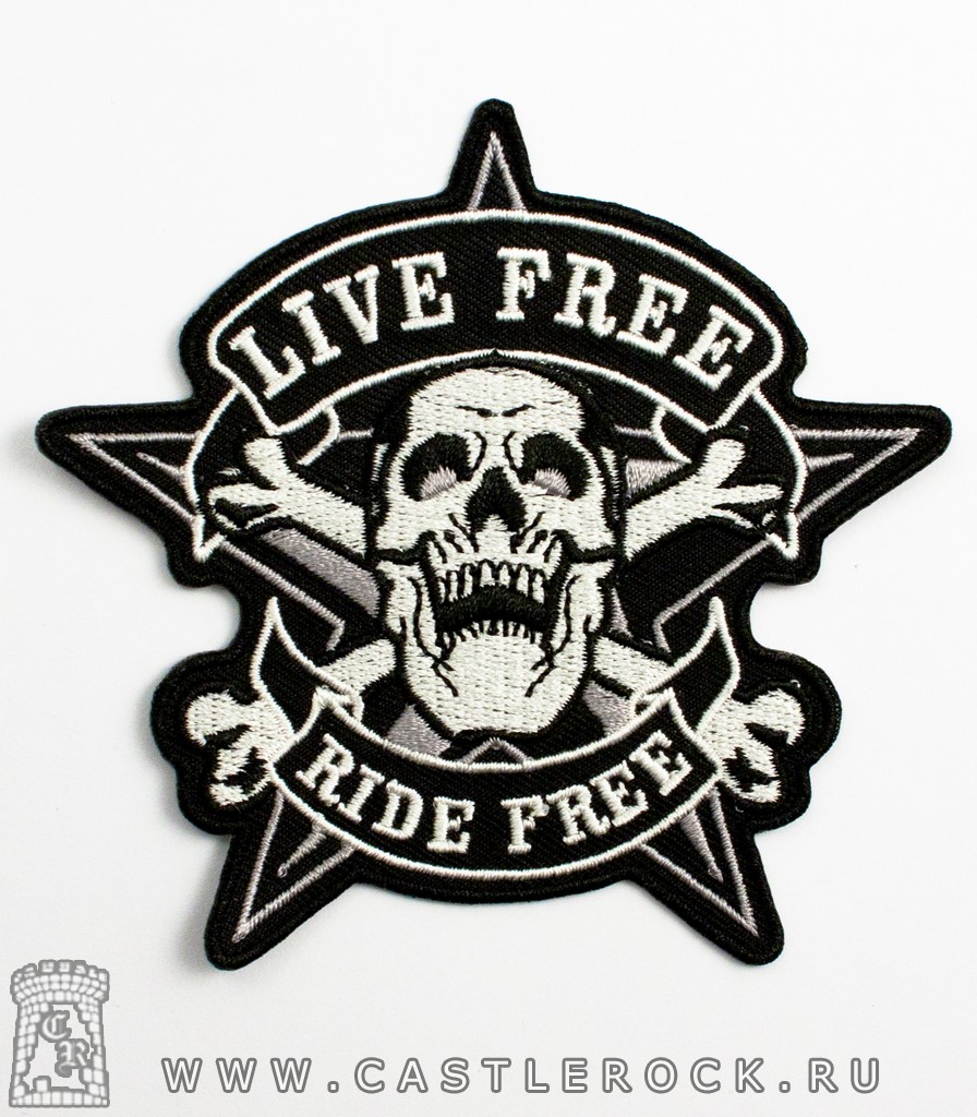 Нашивка термо Череп и Кости "Ride Free Live Free" (вышивка)