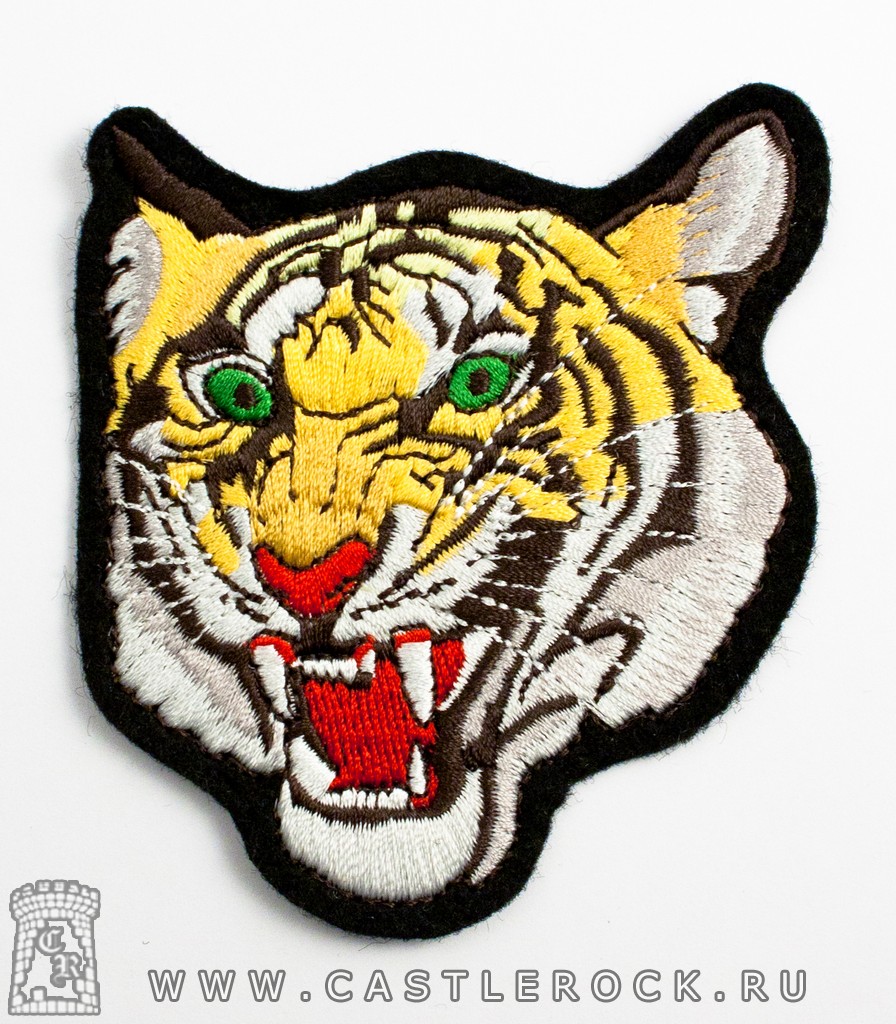 Нашивка термо Тигр (зеленые глаза, вышивка)