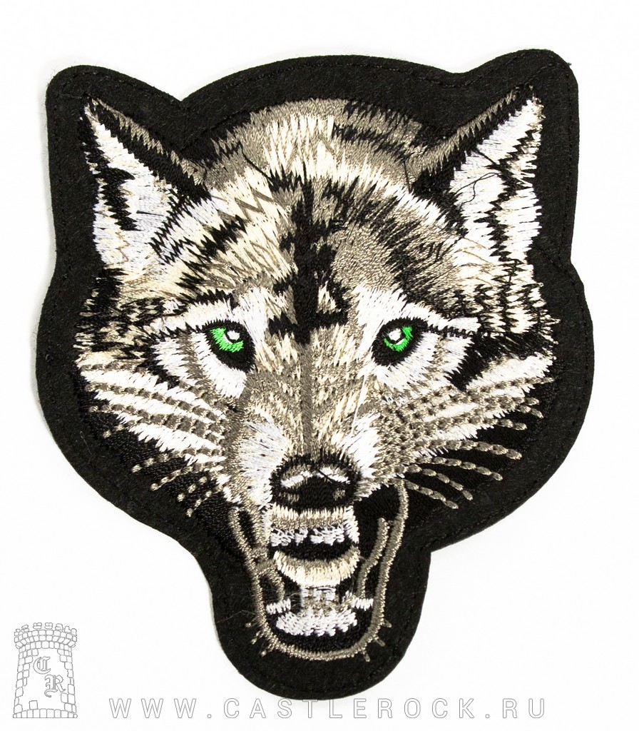 Нашивка термо Волк (зеленые глаза, большая, вышивка)