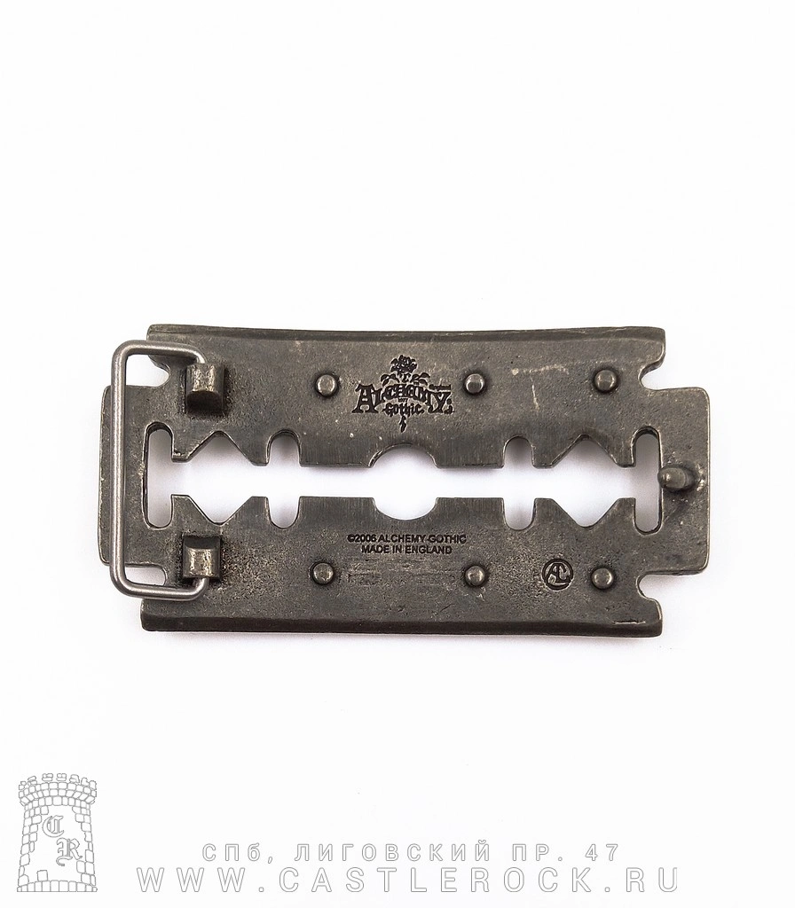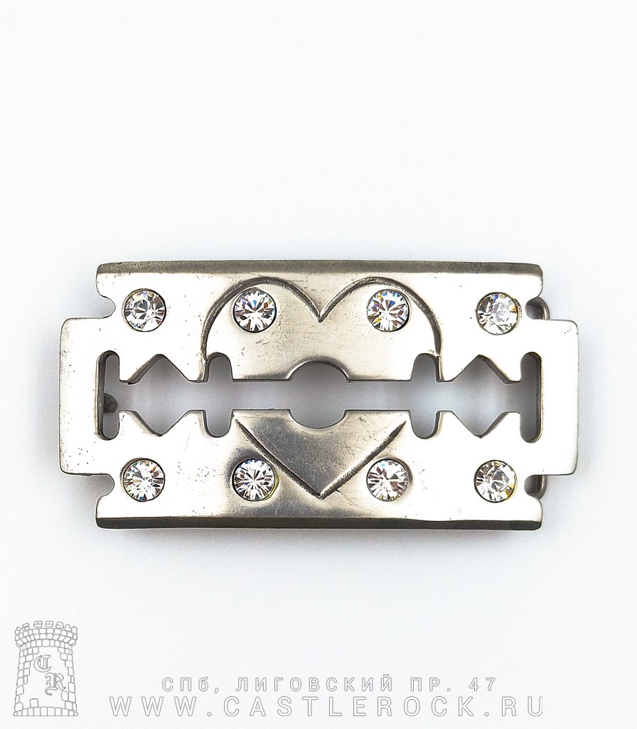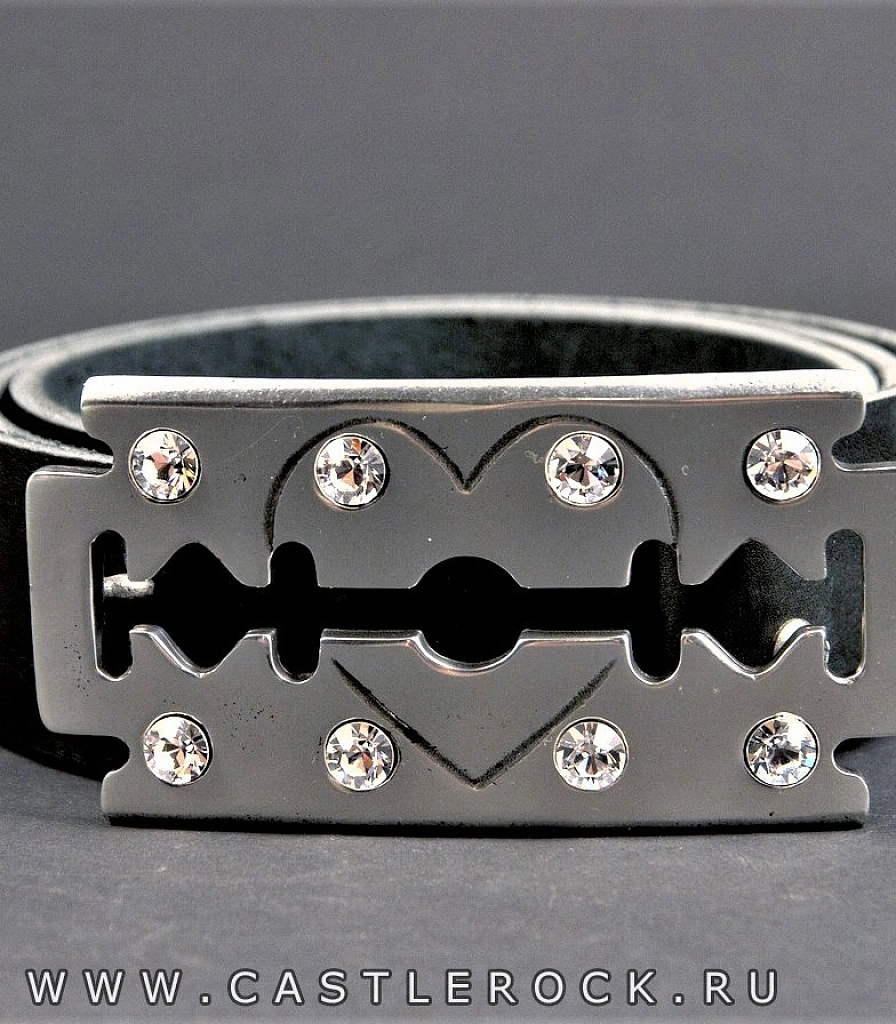 С внутренней стороны располагается штырек с утолщением на конце, который продевается в отверстие на ремне. Для таких пряжек подойдут ремни с одним рядом отверстий по центру полотна ремня.