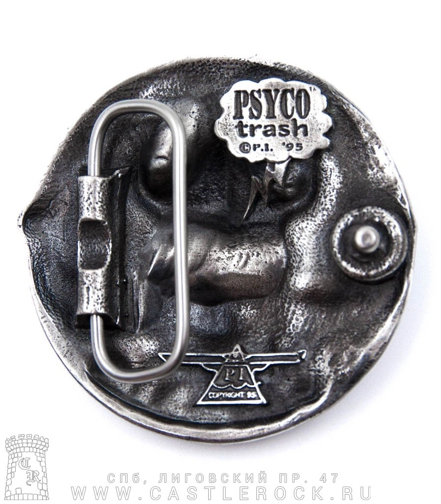 Вид крепления – универсальная застежка-гвоздик. С внутренней стороны располагается штырек с утолщением на конце, который продевается в отверстие на ремне. Для таких пряжек подойдут ремни с одним рядом отверстий по центру полотна ремня.