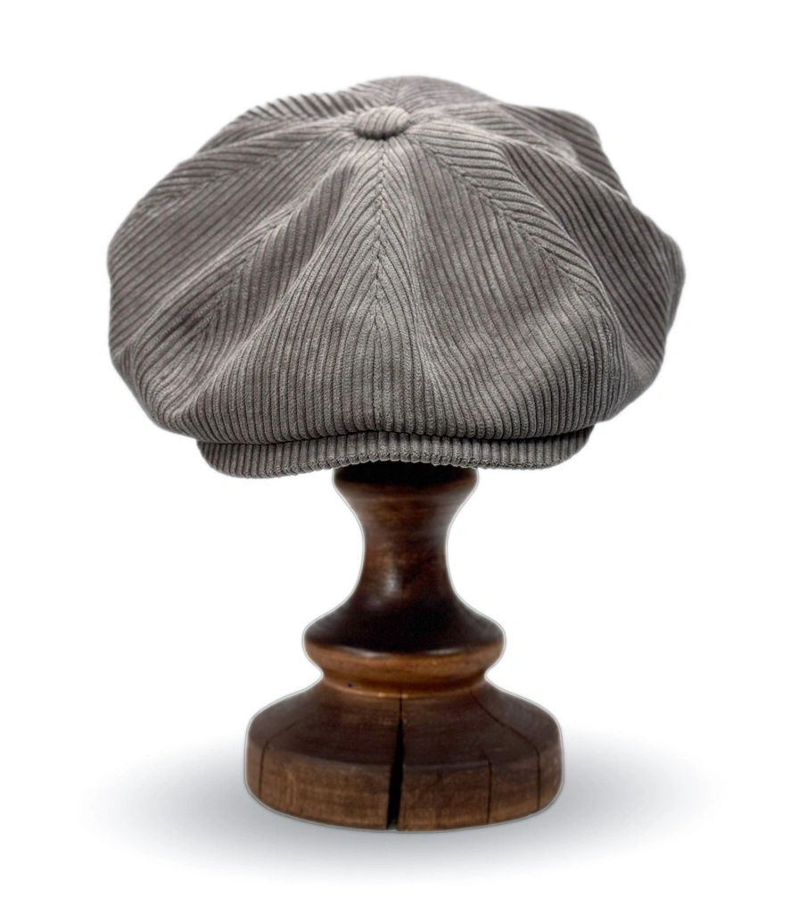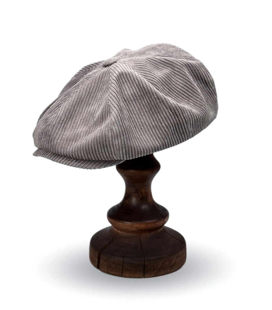 Классическая мужская вельветовая кепка-восьмиклинка серого цвета ручной работы. Материал верха - хлопок/полиэстер, подкладка - хлопок.