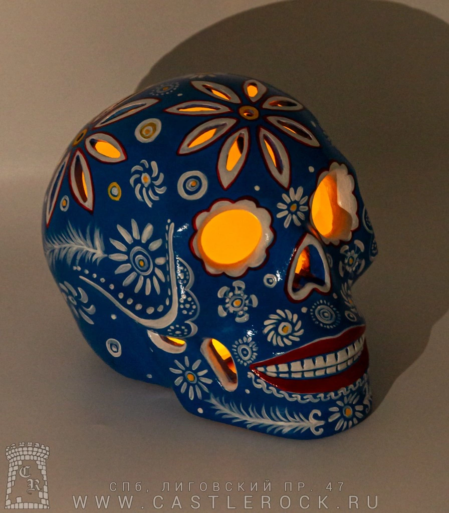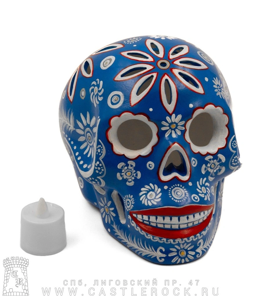 Статуэтка Череп Расписной Santa Muerte (синий)